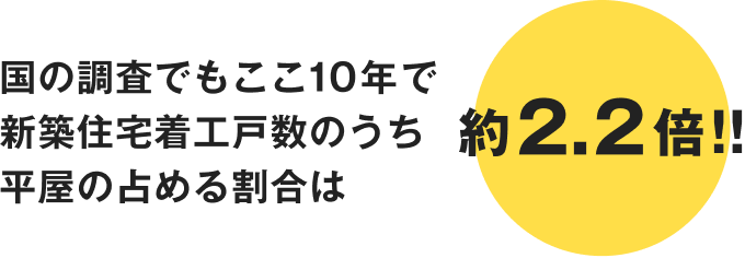 国の調査でもここ10年で新築住宅着工戸数のうち平屋の占める割合は約2.2倍!!