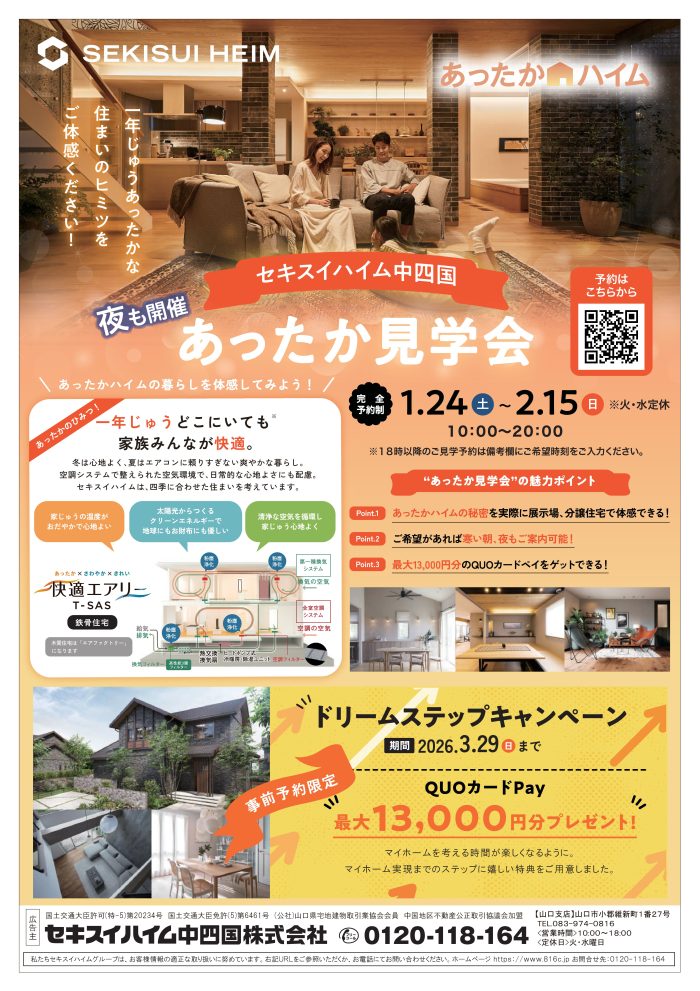 【山口市吉敷中東】夜も開催!あったか見学会