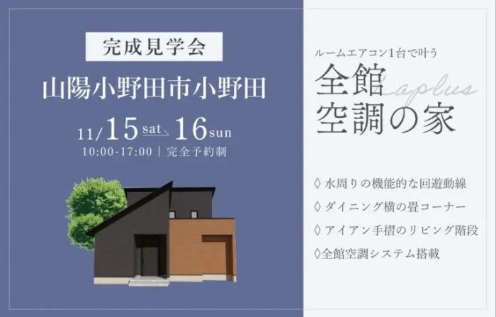 【山陽小野田市小野田】完成見学会開催|11/15(土)・16(日)